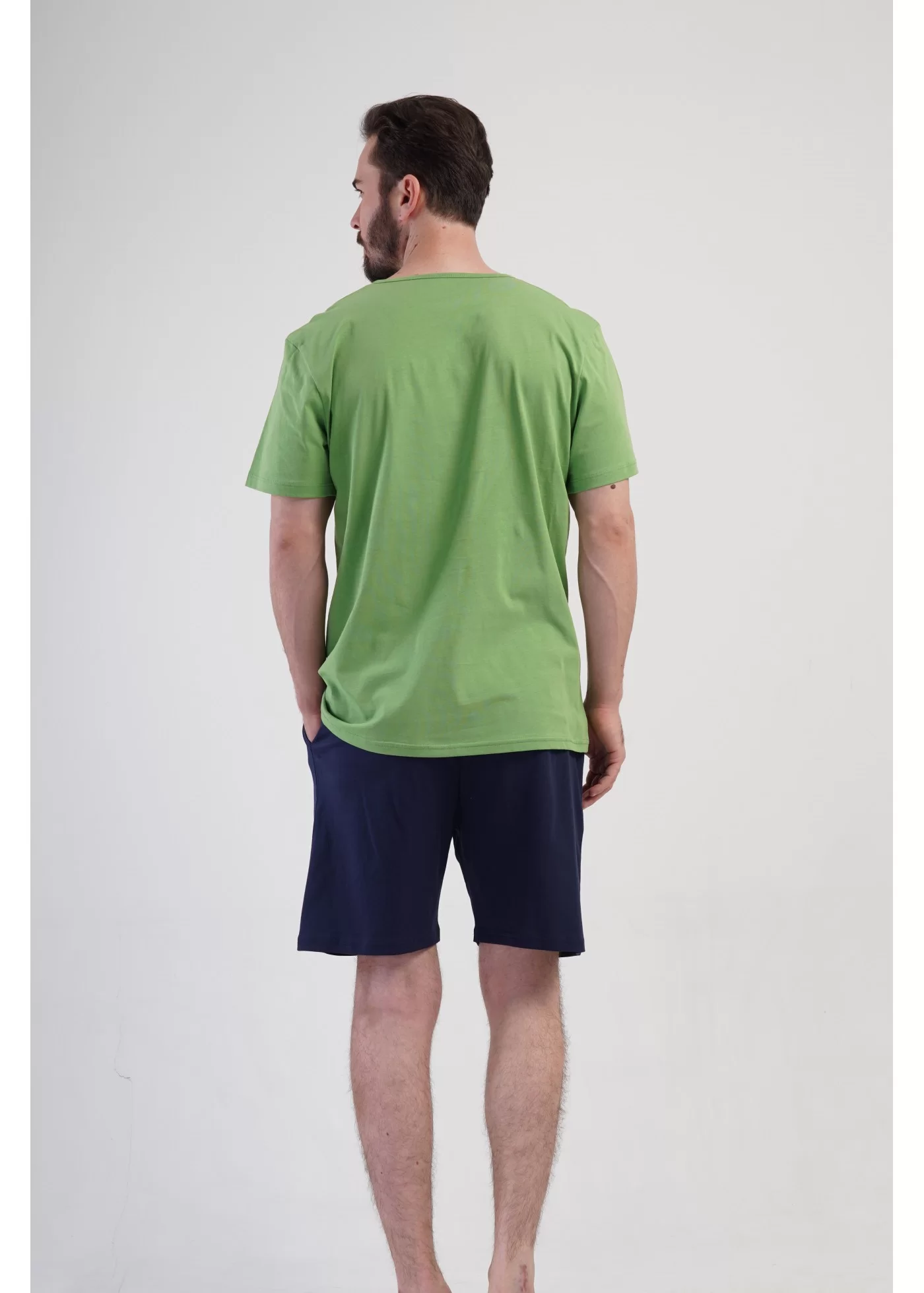 Bluza uni cu desen imprimat pe piept,si pantalon scurt cu buzunare laterale.