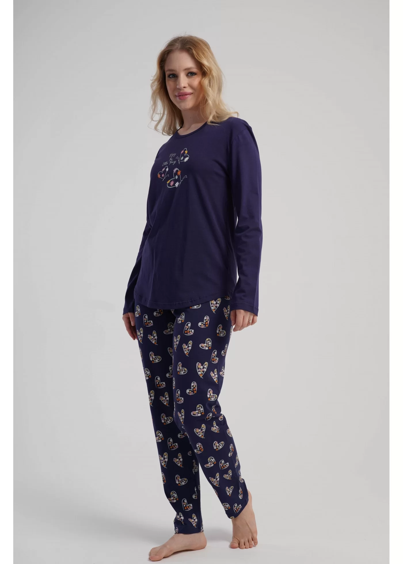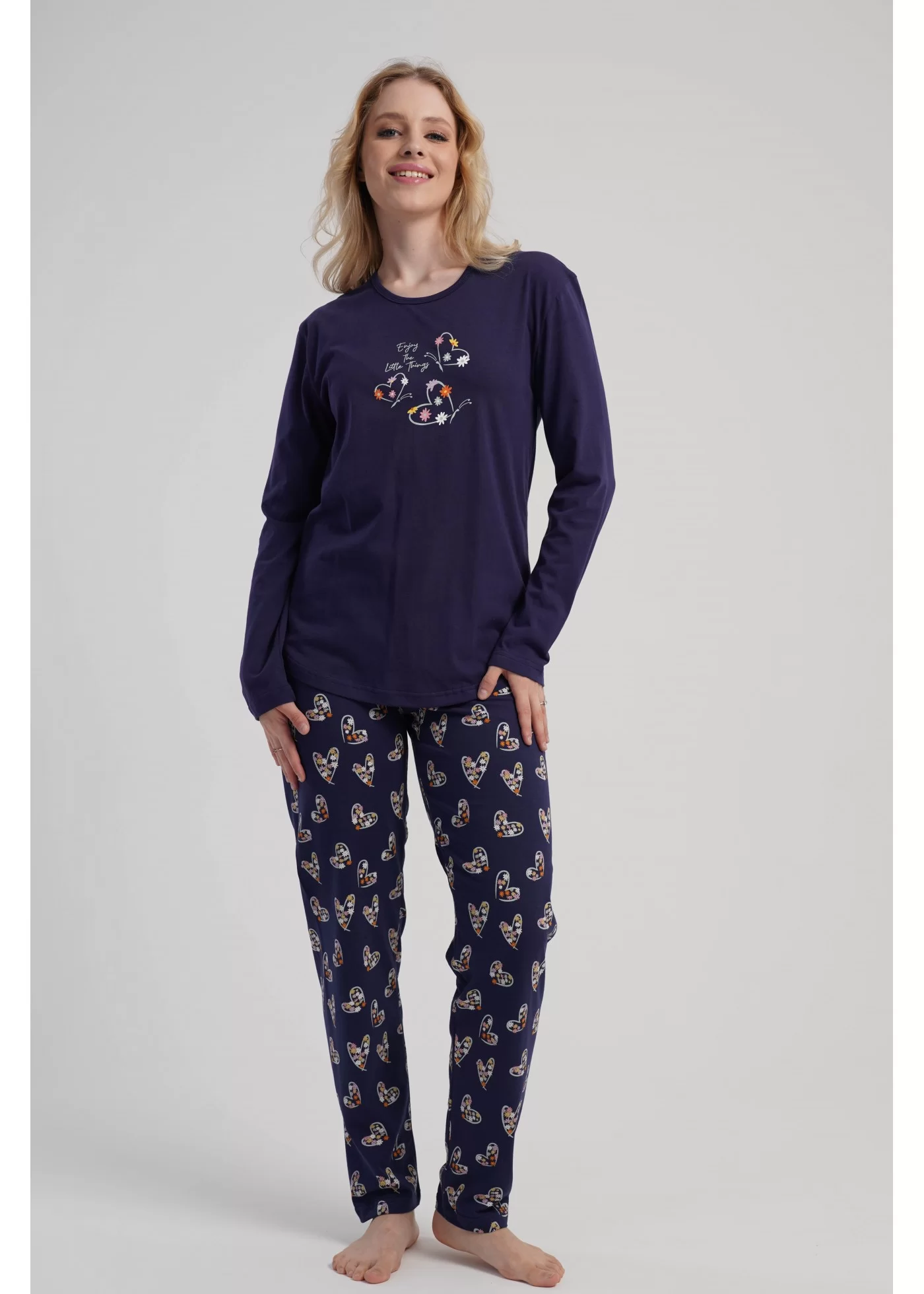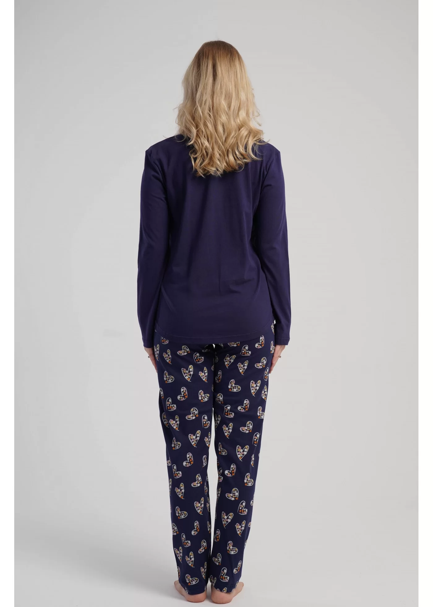 Compleu pijama alcatuit din bluza uni cu desen imprimat pe piept,si pantalon lung imprimat.
